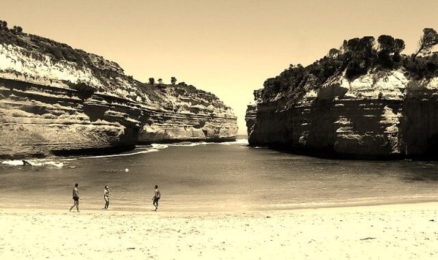In mid-afternoon, George and his hiking buddies had reached the giant stack formations of the Twelve Apostles, end-of-the-line for the Great Ocean Walk. After years of vowing to do the trail one day, they’d finally flown to Melbourne from Sydney and took a bus to Apollo Bay, start of the walk—one hundred ten kilometers spread out over eight days. Eight days of following dirt paths, steps, and boardwalks. Of taking in remote pale-sand beaches, shrub-forested peninsulas, rolling waves, reef rocks, and koala bears, plus the occasional lighthouse, river, and kangaroo. While they waited for a bus to take them back to the start of the trail, they spoke eagerly of how they would celebrate in Apollo Bay.